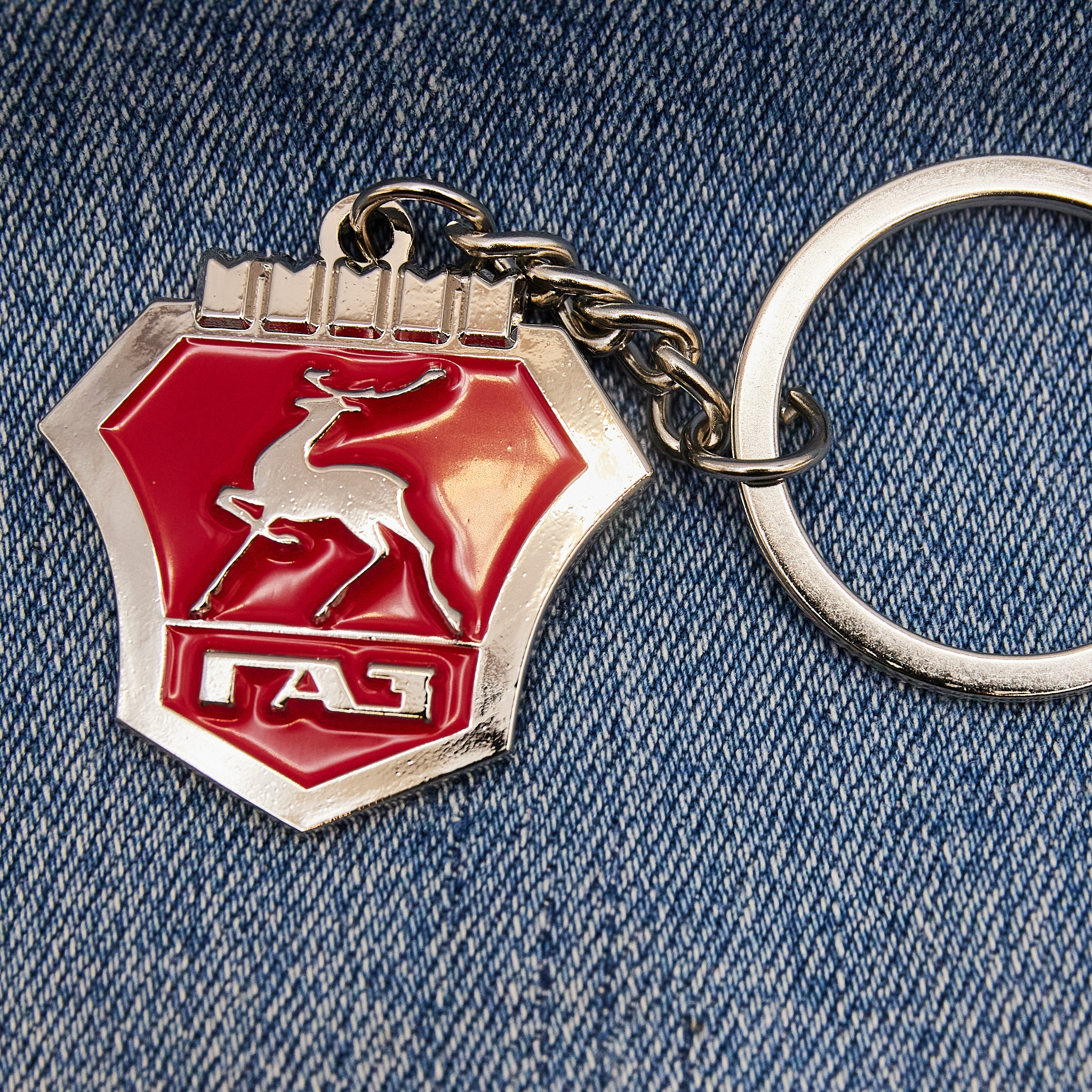 Фигура оленя на щите, увенчанном элементами кремлёвских стен, стала основной во всех последующих вариантах эмблем Горьковского автозавода.