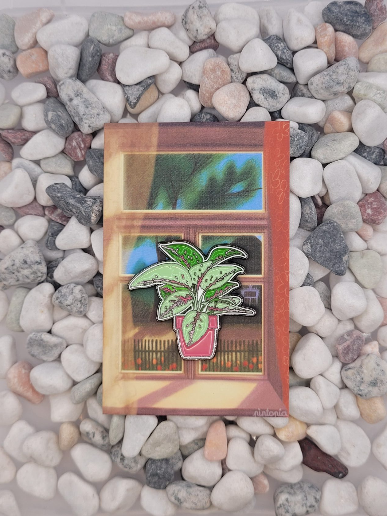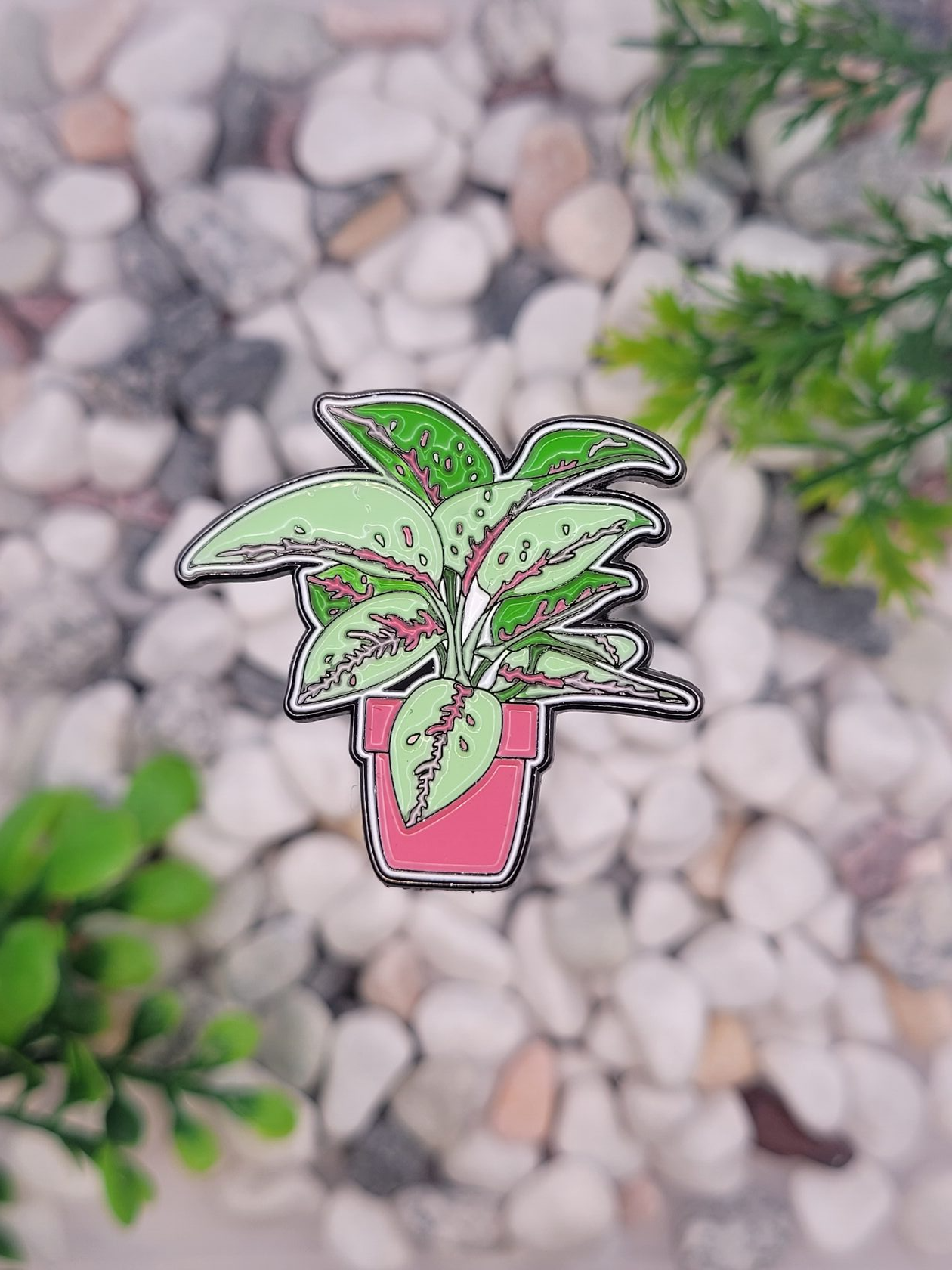 Созданный с вниманием к деталям, значок изображает аглаонему, популярное комнатное растение. Для значка мы выбрали сорт баттерфляй, известный своими разноцветными листьями, с переливами от нежно-розового до ярко-розового цвета. Этот значок станет замечательным подарком для тех, кто обожает украшать свой дом зелеными друзьями и хочет подчеркнуть свою любовь к растениям в своем стиле.