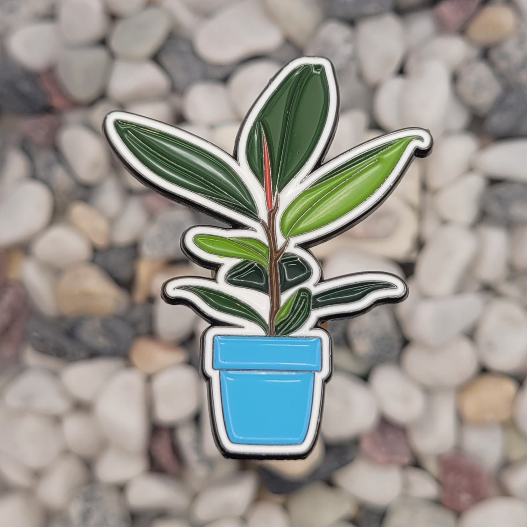 Значок Комнатные растения — фикус эластика робуста — идеальное украшение для любителей растений и уникальных аксессуаров. Этот изящный значок станет стильным дополнением к вашему образу, выделит вас как растениевода и позволит отметить "своих" в толпе.