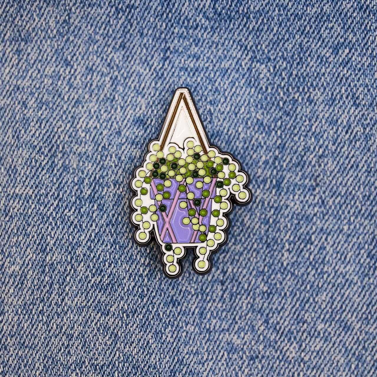 Созданный с вниманием к деталям, значок изображает крестовник, популярное комнатное растение, известное своими необычными листиками-бусинками. Это растения на английском называют жемчужной нитью, потому что оно и правда напоминает жемчуг, только зеленый. Этот значок станет замечательным подарком для тех, кто обожает украшать свой дом зелеными друзьями и хочет подчеркнуть свою любовь к растениям в своем стиле.
