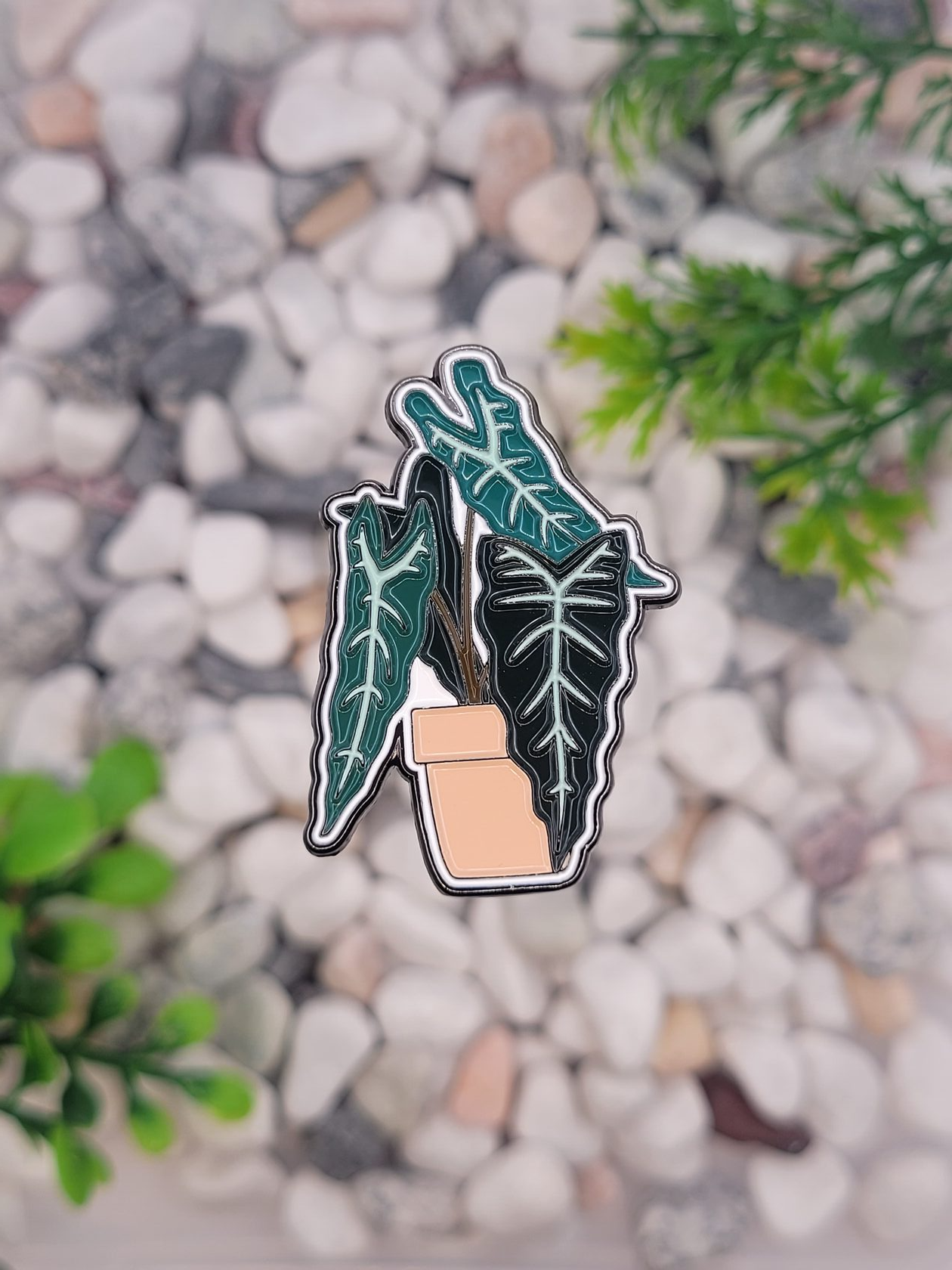 Значок Комнатные растения — алоказия полли — идеальное украшение для любителей растений и уникальных аксессуаров. Этот изящный значок станет стильным дополнением к вашему образу, выделит вас как растениевода и позволит отметить "своих" в толпе.