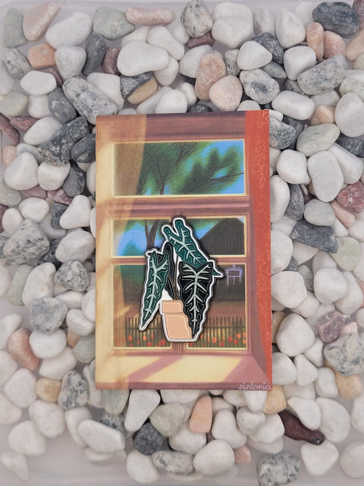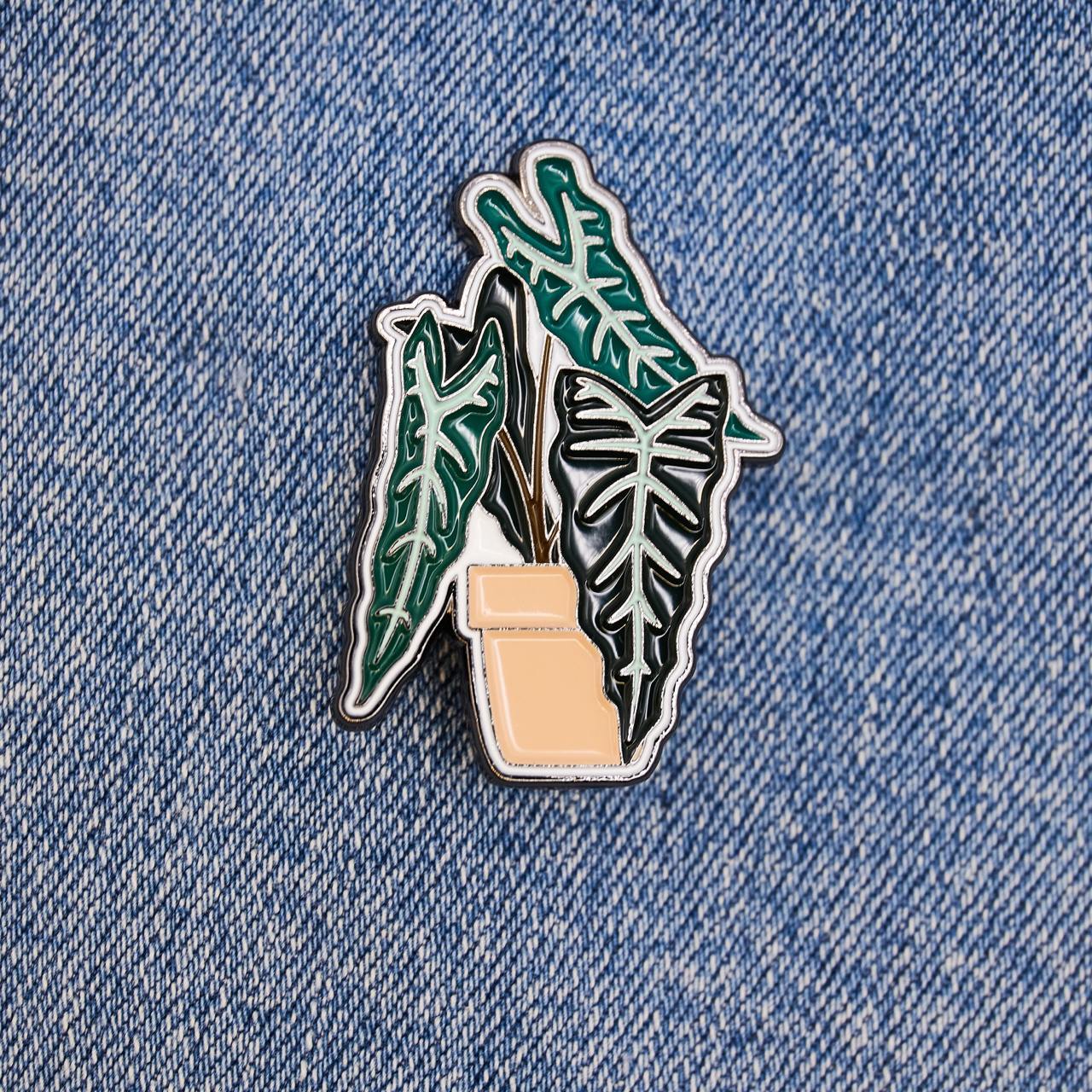 Созданный с вниманием к деталям, значок изображает алоказию, популярное комнатное растение, известное своими насыщенно-зелеными листьями и неприхотливостью. Этот значок станет замечательным подарком для тех, кто обожает украшать свой дом зелеными друзьями и хочет подчеркнуть свою любовь к растениям в своем стиле.