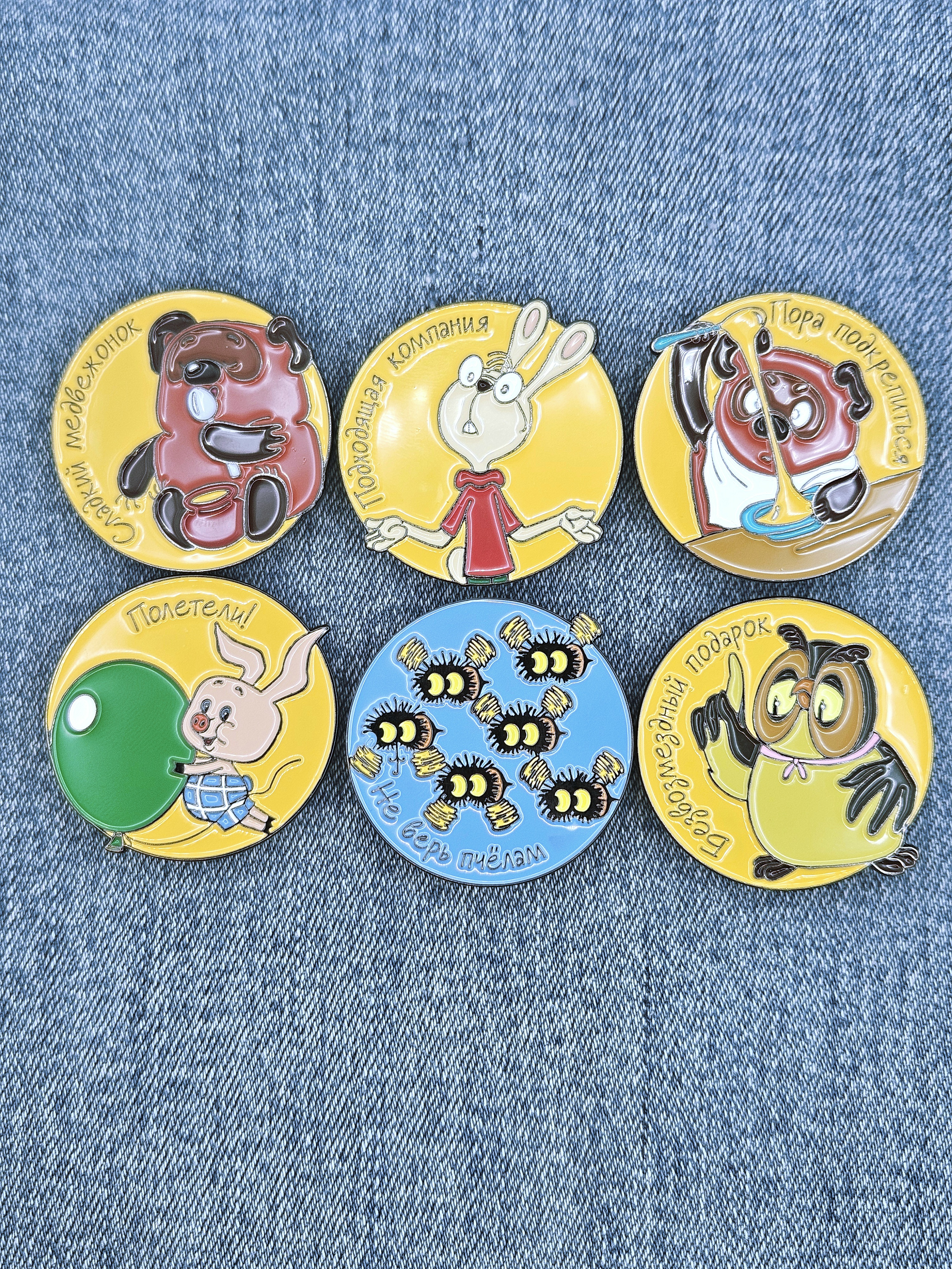 Серия значков про героев мультфильма Винни Пух и все все все.