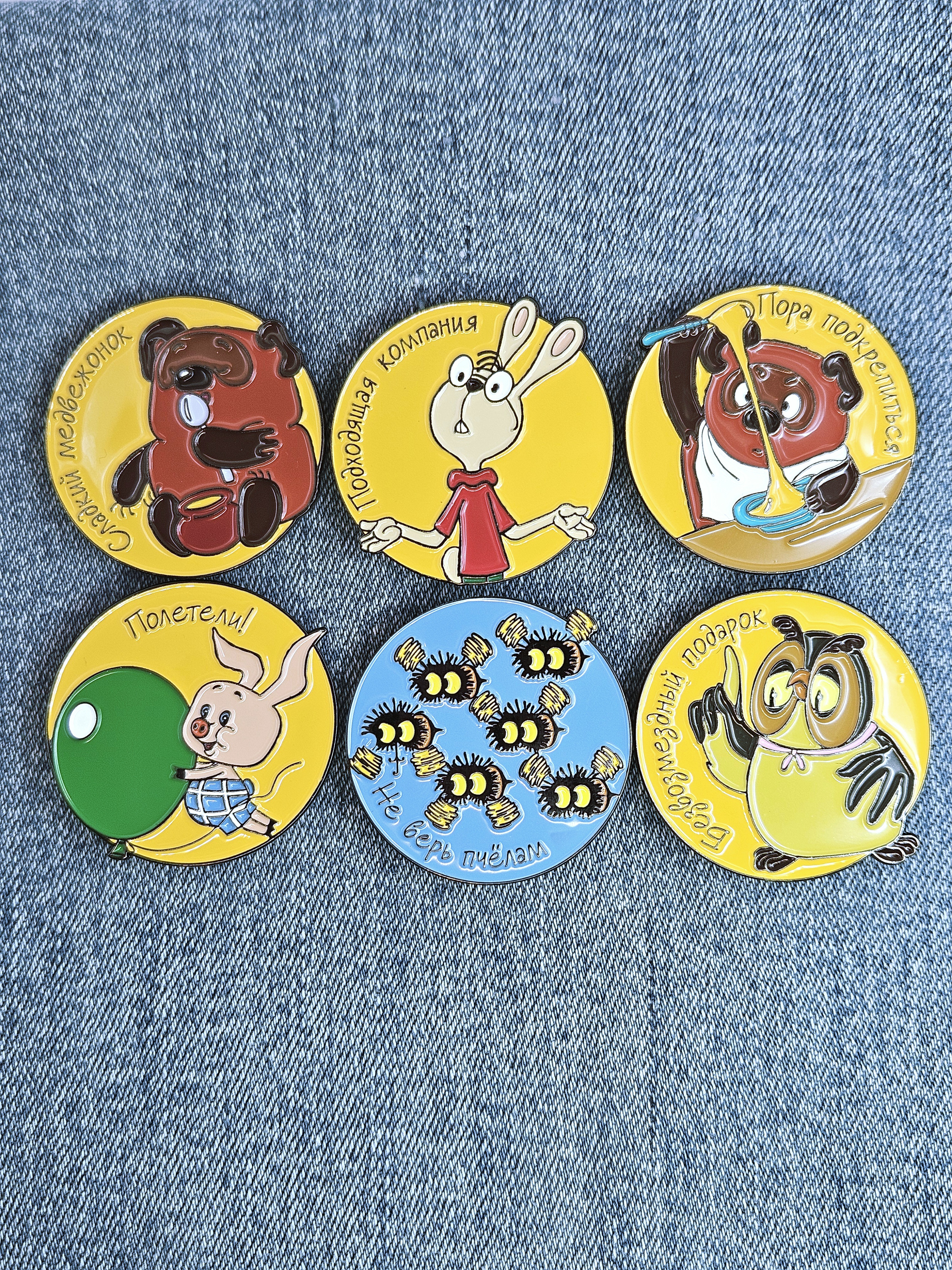 Серия значков про героев мультфильма Винни Пух и все все все.